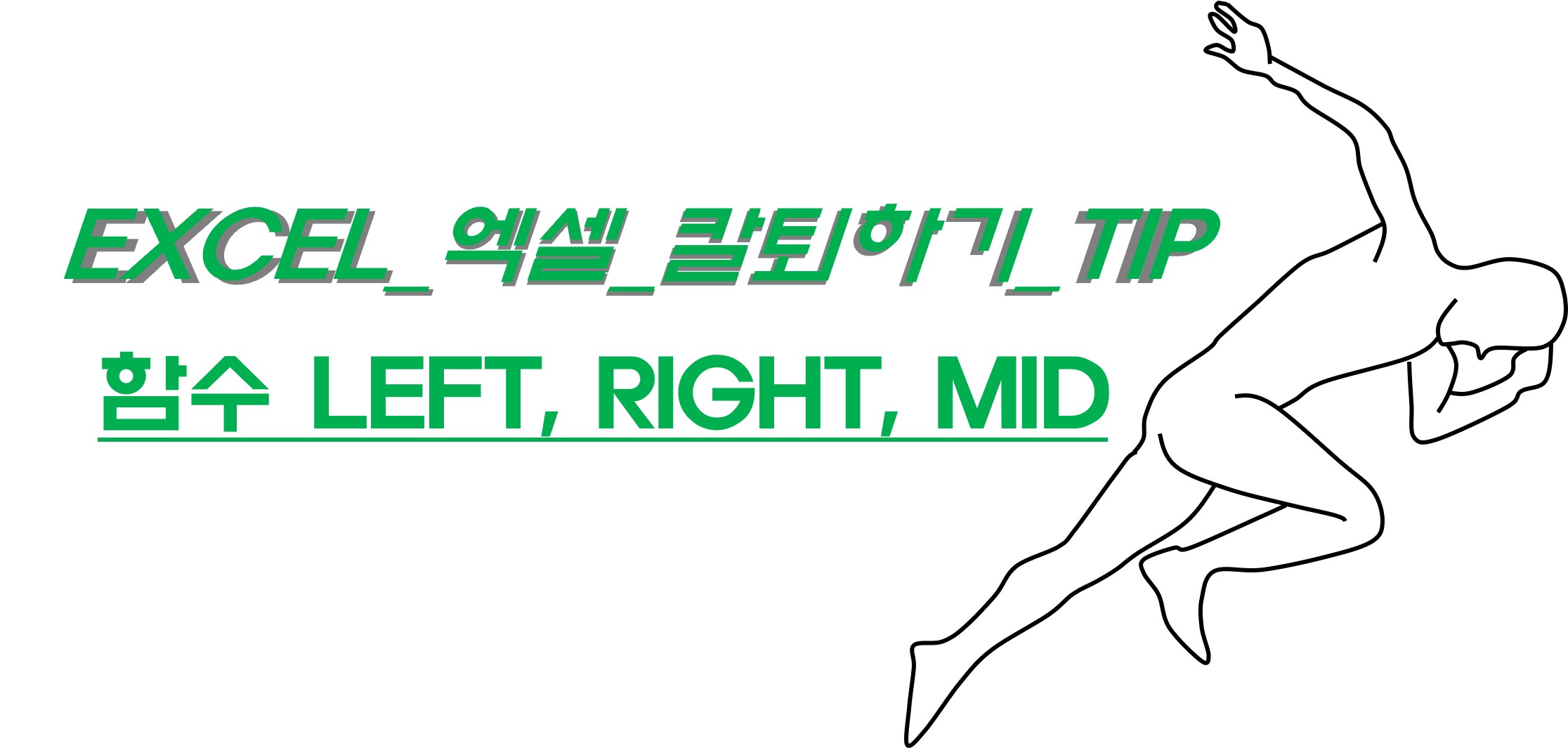 엑셀_EXCEL_함수_LEFT_RIGHT_MID 칼퇴를 위한 실력쌓기~! 이번에는 엑셀 함수 LEFT / RIGHT / MID 의 활용법에 대하여 알아봅시다. 1.LEFT함수 =LEFT(텍스트,카운트 숫자) 지정한 텍스트 중에 왼쪽부터 몇개까지 가져올 것인지 정할 수 있습니다. 2. RIGH함수 =RIGHT(텍스트,카운트 숫자) 지정한 텍스트 중에 오른쪽부터 몇개 까지 가져올 것 인지 정할 수 있습니다. 3.MID 함수 =MID(텍스트,기준 숫자,카운트 숫자) 지정한 텍스트 중에 기준 숫자 다음부터 몇개 까지 가져올 것 인지 정할 수 있습니다. (단, 기준 숫자는 왼쪽부터 카운트) 예시를 보시죠. A2 ="울산중구가족센터" 에서 LEFT(A2,2) = 왼쪽부터 두글자, "울산"을 가져오고 RIGHT(A2..